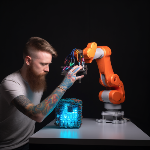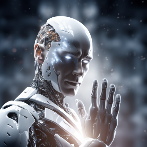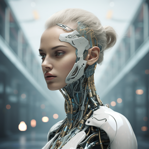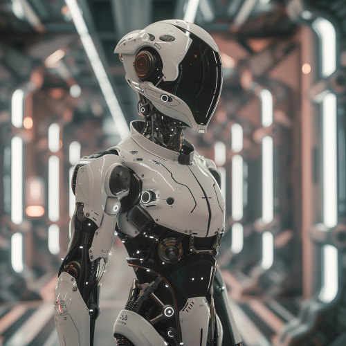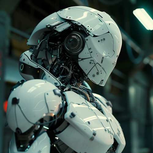 [Theme] High-tech humanoid robot, futuristic [Style] Modern sci-fi with intricate details, cinematic feel, matte surface [Perspective] Cinematic wide-angle shots, deep field, soft Light and Shadow, High contrast, interplay of warm and cool tones [Environment] High-tech laboratory, sleek surfaces, cinematic scene setting [Atmosphere] Strong cinematic vibe, intelligent, innovative [Features] Advanced mechanical structure, flexible joints, details with cinematic-grade effects --v 6.0