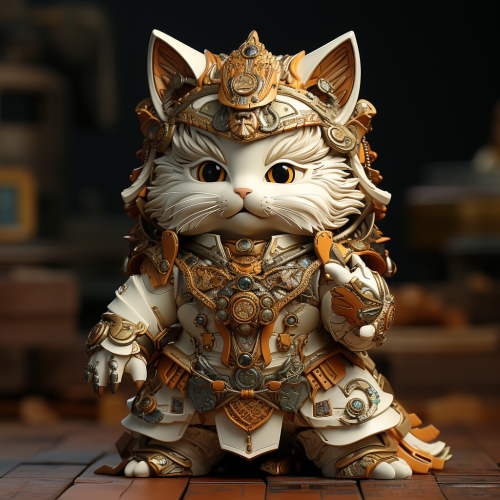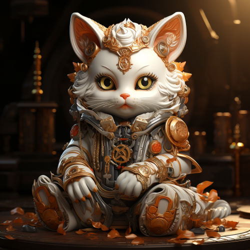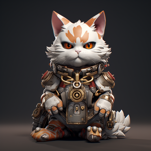maneki-neko game character for a battle-royale money game, cat looks aggressive and cool, high poly design --v 6.0