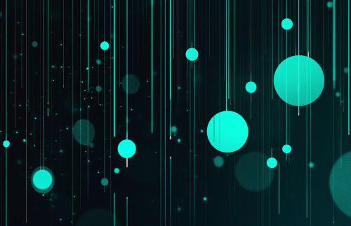 Two minimalist figures interacting with a vertical line between them, one figure pushing from the left side with a green circle background, and the other figure pulling from the right side with a yellow circle background. A left-pointing arrow is positioned in the center between the two figures. The background is black, clean, and modern with a tech-centric, digital theme. --ar 2:1