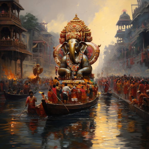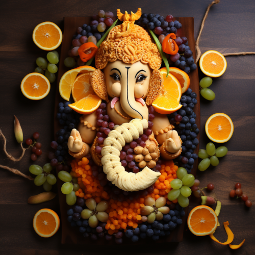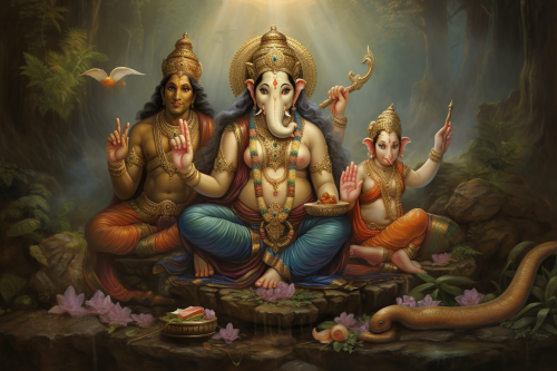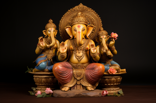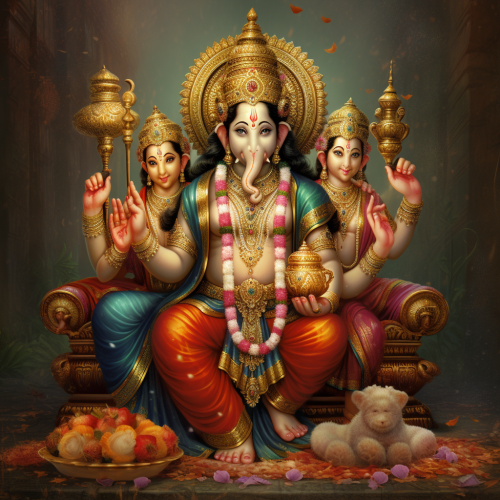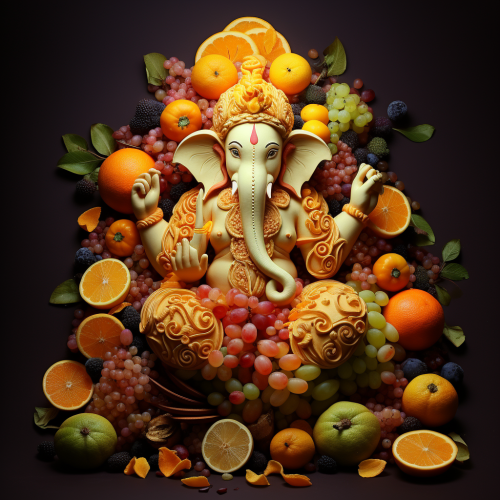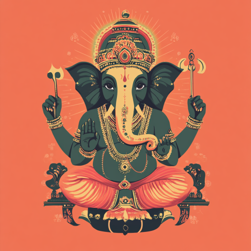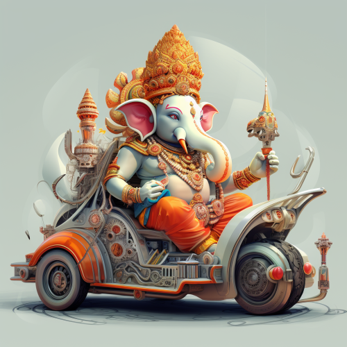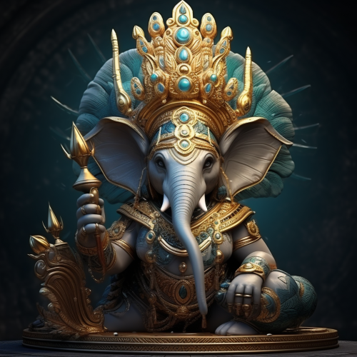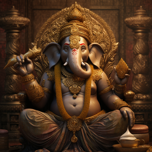 An intricately detailed Lord Ganesha, seated on armchair sofa , rendered in ultra-realistic 32K resolution.