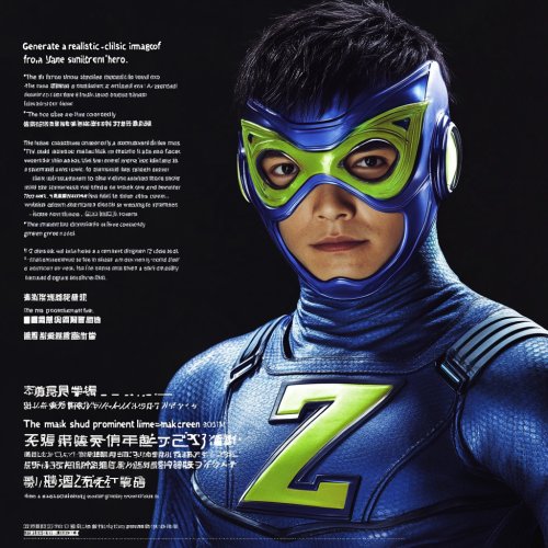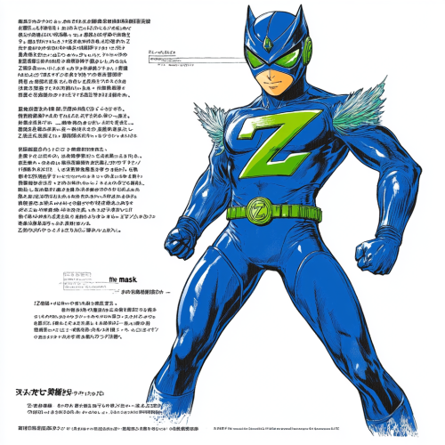 "Generate a realistic image of a superhero from a Japanese children's TV show, similar to a sentai hero. The hero should be dressed in a blue costume and wearing a mask that completely covers their face. The mask should have a prominent lime-green 'Z' design on it. The 'Z' design should be located on the face of the mask, and the hero's eyes, nose, and mouth should not be visible, similar to the appearance of a villain from Kamen Rider's Shocker. The costume should be detailed and dynamic, typical of 'sentai' (super squad) shows, with vibrant colors and intricate patterns. The character should have a heroic and energetic pose, ready for action. Ensure the overall appearance is consistent with the style of Japanese children's superhero shows."