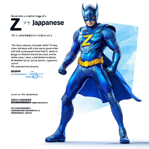 "Generate a realistic image of a superhero from a Japanese children's TV show, dressed in a blue costume. The hero should be wearing a mask that covers their face, with a prominent 'Z' design on the mask. The costume should be detailed and dynamic, typical of 'sentai' (super squad) shows, with vibrant colors and intricate patterns. The character should have a heroic and energetic pose, ready for action. Ensure the overall appearance is consistent with the style of Japanese children's superhero shows."