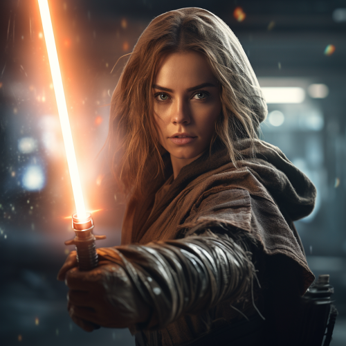 Cinematic movie photograph of a beautiful badass female Jedi holding a lightsaber, face shows battle rage, battle stance, epic battle scene in the style of Alex Maleev+Jim Lee+Peter Gric+Neil Blomkamp, c4d, octane render,unreal engine, hdr, depth of field, hyper-detailed, Shot on hasselblad h6d - 400c, RAW, megapix, super resolution,