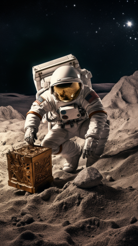 photograph of an astronaut opening a treasure chest on the moon --ar 9:16 --s 50 --v 5.1