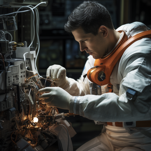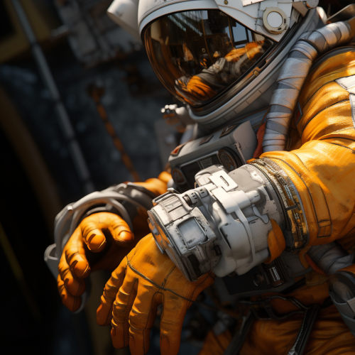 a detail of an astronaut while is wearing his two gloves before the launch in the style of 8k 3d