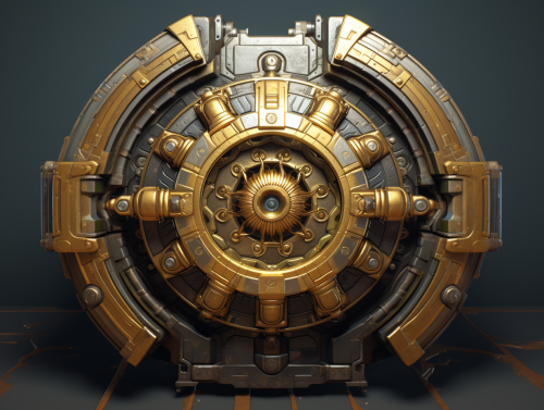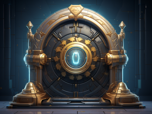 Gold vault gate, vault door, game assets set, game items, shine, sparkle, treasure, 4k --ar 16:12