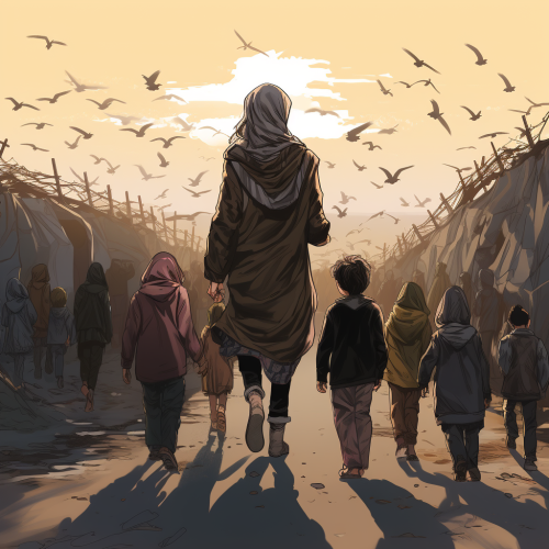 Create a visual narrative that highlights the journey of refugees seeking safety and a better life --v 5.2