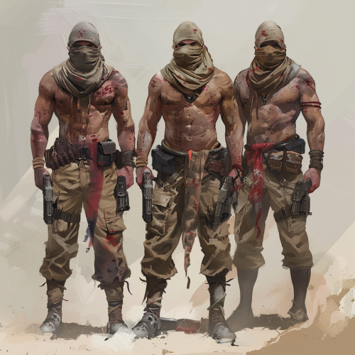 very Short stocky and muscular futuristic soldiers, arabic appearance and have ritualistic scarification, very short and muscular.