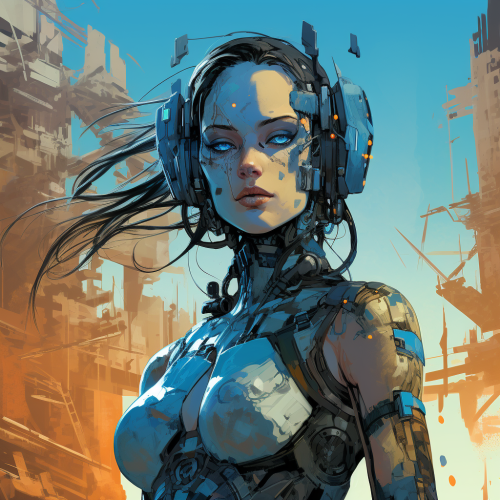 Create a detailed and compelling full-body illustration of a futuristic female robot in the midst of battle within a post-apocalyptic world. Emphasize the color blue and infuse the character with a blend of advanced technology, feminine features, and unyielding strength, reflecting her resilience in the face of a ravaged world. Robot Description: Color Palette: Utilize a range of blue shades, from deep cobalt to vibrant turquoise, to create a visually striking and cohesive color scheme. Add accents of metallic silver, weathered gray, and muted tones to denote wear and tear from the harsh environment. Use strategic touches of glowing neon lights or energy accents to highlight key features. Design Style: Craft the robot with a humanoid, feminine physique, balancing grace and power. Incorporate sleek, metallic armor with intricate details, representing advanced technology. Integrate battle scars, worn textures, and rusted components to convey the challenges of survival in a post-apocalyptic setting. Pose: Depict the robot in a dynamic and fierce combat stance, capturing a moment of intense action. Whether she's wielding futuristic weaponry, engaging in hand-to-hand combat, or evoking a commanding presence, ensure the pose showcases her strength, agility, and determination. Environment: Situate the robot in a desolate and war-torn landscape. Illustrate the ruins of once-grand structures, overgrown vegetation, and remnants of advanced technology reclaimed by nature. Use atmospheric effects like dust clouds, smoke, or subtle lighting to enhance the dramatic impact of the scene. Narrative Element: Convey a sense of purpose and emotion in the robot's expression. Is she a lone survivor fighting for her people, a guardian protecting the last sanctuary, or a relentless [...]