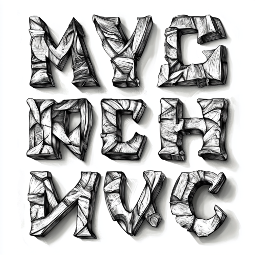 Create an original typography, that does not yet exist (all the signs of the alphabet), inspired by organic shapes, serif style (taking into account baseline, x-height, and ascenders/descenders).