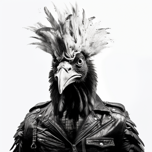 chicken punk. bw. on white background. minimalistic trash collage punk
