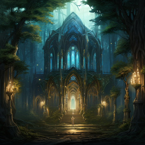 Forest Cathedral**: Draw a majestic cathedral nestled within an ancient, enchanted forest, its towering trees forming the cathedral's pillars.