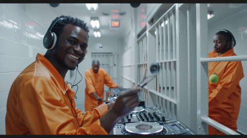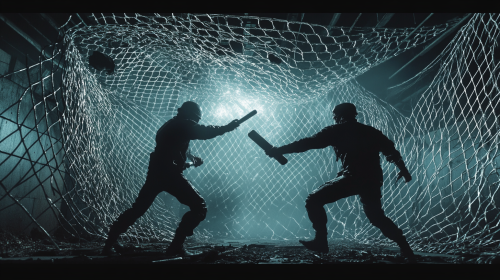 rustic gritty indian desi prison, two female desi prisoners being madly in love in rains in prison open gym, heavy rains, gritty, natural color tones, gritty --no looking at the camera --ar 16:9 --v 6.1