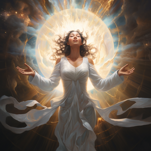 law of assumption artwork that is awe and breath taking, clean and simple, 4k, mystical, we are light beings, frequnecy and vibrations, spiritual