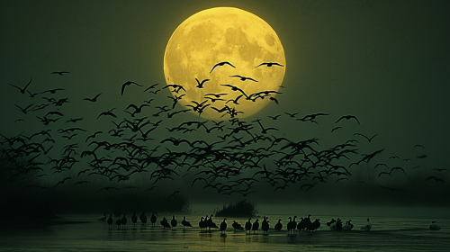 Night Flight: Birds illuminated by moonlight instagram post or social media post template 8k --q .5 --chaos 50 --ar 16:9 --stylize 500 --v 6.0
