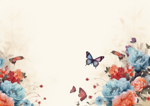 blank template of the back of a post card, no background, fill up the picture, flowers and butterflies --ar 148:105