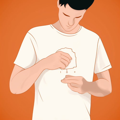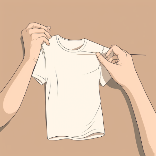 Simple image of a hand drawing a t-shirt, flat minimalist design with thin outlines, instagram post, in the style of adobe illustrator --v 5.0