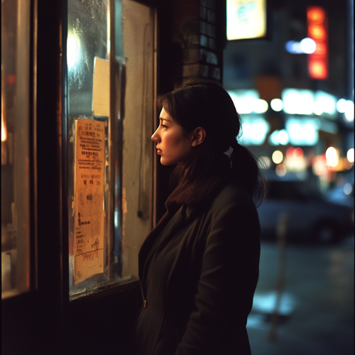 Color photograph on film. 2004 photograph film quality. Candid photo of woman. NYC 2004. 2004. High quality 2004 photograph. Candid photograph from 2004. Women of the night. Ill repute. Seedy part of town. Nighttime in NYC. East Village. Vintage. Candid photo of woman. 2004. NYC in the 2004. High resolution.
