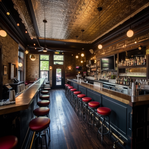 a seedy futuristic night club with a sleek bar and dancers on podiums scattered throughout - dodgy and dangerous people fill the club - very cyberpunk/star wars - hyper realistic --ar 16:9
