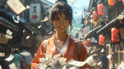 a cute women won the lottery, --ar 16:9 --chaos 50 --s 1000 --v 6.0
