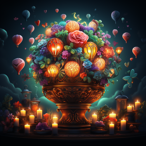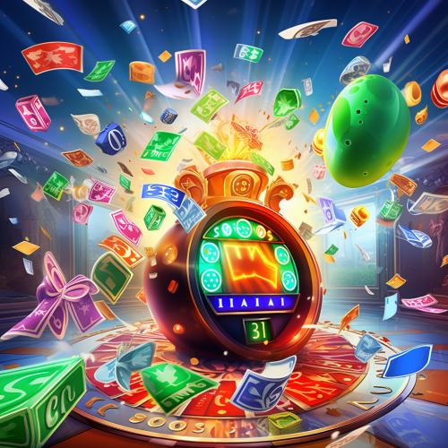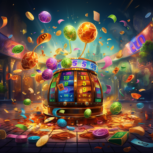 lottery game background image, [2]A vibrant and colorful scene with various elements of luck and excitement. There are bright lights, confetti, and balloons filling the air. The backdrop is filled with swirling patterns and symbols of good fortune, such as horseshoes, four-leaf clovers, lucky dice, and playing cards. In the center, there is a large spinning wheel or lottery machine, attracting attention and anticipation from the crowd.[3]The setting takes place in a lively casino or a festive event venue. People are gathered around the lottery area, eagerly waiting for their turn to participate. The atmosphere is buzzing with energy and anticipation, as everyone hopes to win a prize.[4]There is a sense of thrill and excitement in the air. Laughter and cheers can be heard as winners celebrate their victories. Some people wear expressions of hopeful anticipation, while others display disappointment if luck doesn't go their way.[5]Illustration style[6]Digital illustration with vibrant colors and detailed textures. The scene will be depicted with a combination of different digital art techniques, creating a visually appealing and dynamic composition,orange --style raw --s 250