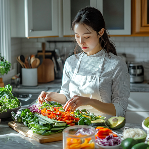 Create an image of a kitchen featuring Burgundy Bliss red kitchen cabinets, which offer a deep, wine-red hue perfect for a cozy, elegant setting. Pair these cabinets with dark soapstone countertops and a matching backsplash to create a seamless, sophisticated look. The flooring should be a rich, dark hardwood, providing a warm base for the dark cabinets. Elegant gold fixtures and a classic crystal chandelier can add a luxurious touch. This kitchen should radiate warmth and luxury, ideal for gourmet cooking. Neat and organized. Camera: DSLR - Canon EOS 5D Mark IV. Lens: Canon EF 24-70mm f/2.8L II USM. Composition: Wide shot, room-centered, horizontal orientation, balance between furniture and space. Film: Digital, high resolution, color profile sRGB. Camera settings: ISO 400, f/2.8, 1/60 sec. --ar 2:3 --v 6.1 --s 250