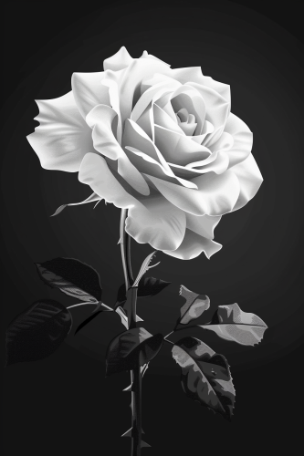 a flat white on black illustration of a single rose with no shading, to be placed on the packaging of a very expensive luxury perfume bottle --ar 2:3