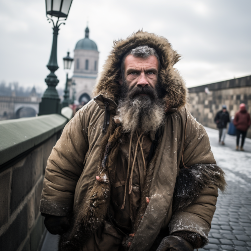 a photo of 40 years old man with big bear, in Prague - Charles Bridge, wears old money style,