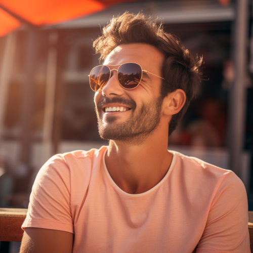 a confident happy man enjoying the sunshine, sunglasses on and well groomed, hd photo