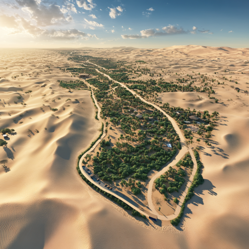 create me a route map in the Abu Dhabi desert, with the route showing: Al Sila, Barakah Nuclear Power Plant, Al Ruwais Refinery, Ghiyathi, Woteed water well, Umm Hosn Fort, Al Nashnash, Qasr al Sarab Desert Resort by Antatara, Al Dhafra Fort, Al Marzoom hunting reserve, Al Quaa Milky Way Spot, Al Qou end of ADR start of AA region, Al wiqan, Al 'Arad, Bu Kirayyah, Al Dhahrah, Mbazzarah Al Khadra, Jebel Hafit Tombs, Mezyad fort, Al Ain Oasis, Al Jahill Fort, Al Jimi Oasis, Bait Mohammed Bin Khalifa, Al Ankah Fort, Sheikh Zayad Festival. sunny, heat, real, realistic.