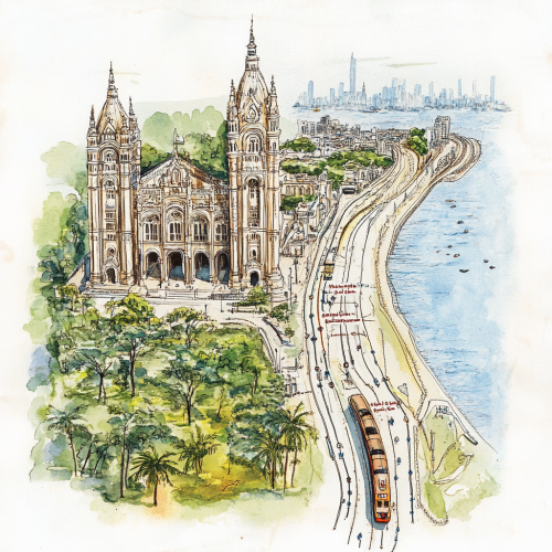 in the whimsical styled Disney illustration the backdrop is a collage of the iconic burj khalifa and some trees. Set in the background of vibrant beautiful blue skies