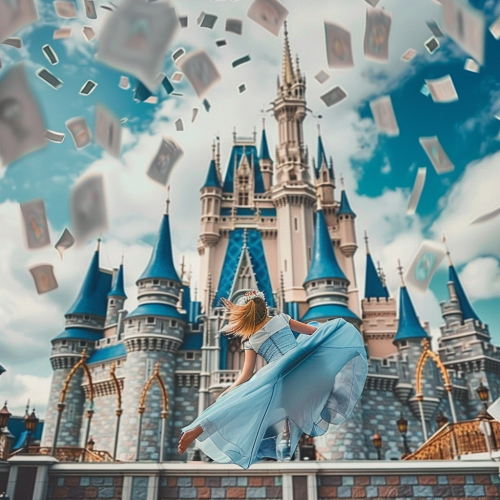 hundreds of photographs of disney tourists, floating through the air magic beautiful --v 6.0 --s 50