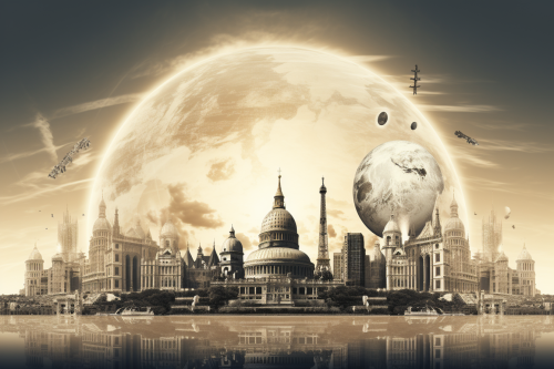 A montage of global landmarks with a superimposed message of peace and unity, symbolizing the ongoing quest for a safer world. --ar 3:2