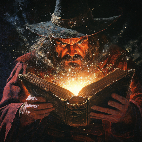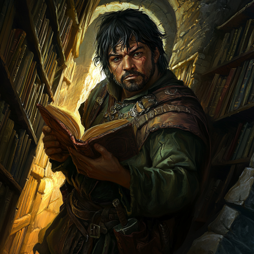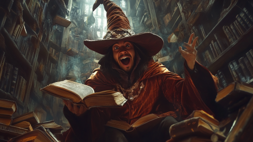 dungeons and dragon character, full body, stocky build, scarred visage, male, gnome, wizard, casting colour spray ability, standing in a mage tower library, dramatic lighting, dark black hair, olive skin, Asian facial features, crazed look in eyes, Wes burt inspired, dramatic lighting, realistic