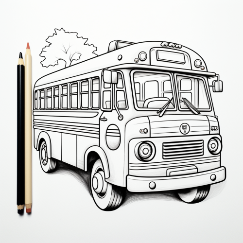 children coloring book, cute, school bus, white background, thick lines, no shading