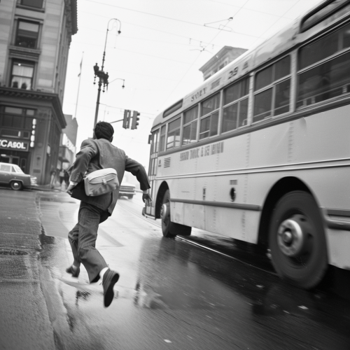 a man holding multiple camera lenses in his arm running toward the camera, panicked, tons of camera gear on him --v 6.0 --s 50