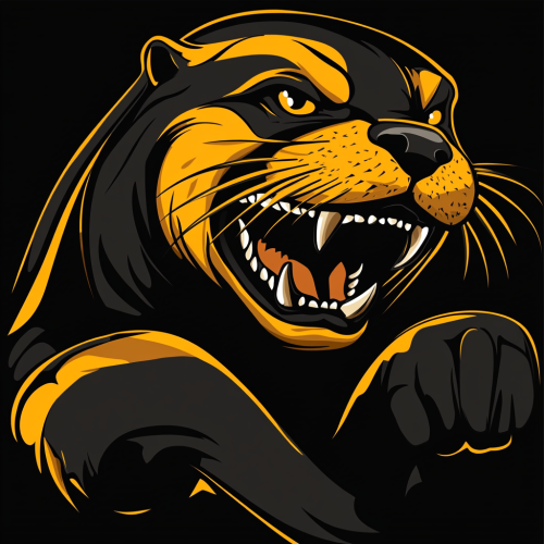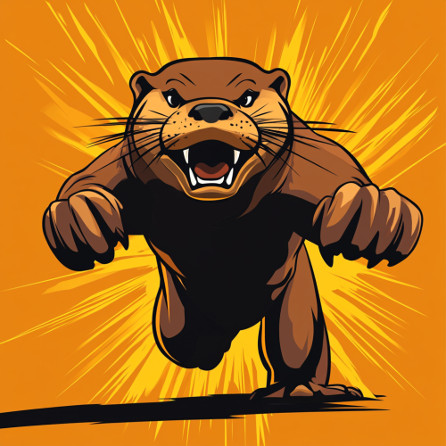 Create a vector image of an Amazonian giant otter (Ariranha) mascot for a sports team, designed to look powerful and imposing. The otter should have bold, sharp features and an athletic build, emphasizing its strength and agility. The design should be clean and modern, with dynamic lines that convey motion and energy, inspired by university sports league mascots. The otter’s expression should be fierce and determined, capturing the competitive spirit of the team. The overall style should be bold and impactful, perfect for a team mascot in a vector art form --style raw