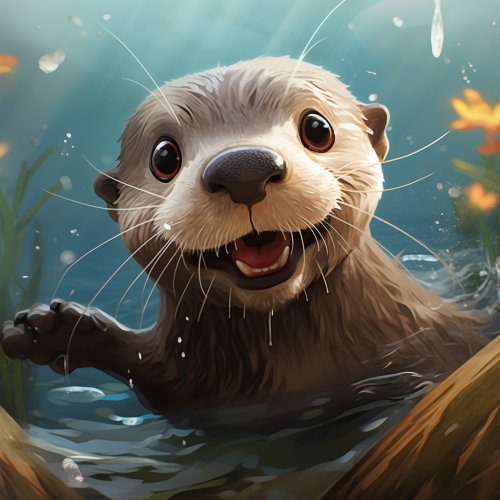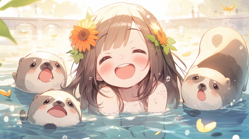 anime cute otter swimming on pool , happy smile --ar 16:9 --niji 5