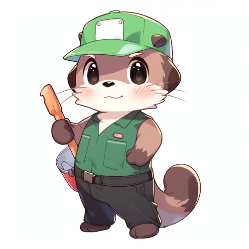 chibi otter with grey fur and green eyes dressed as a handyman. White background --s 50 --niji 5
