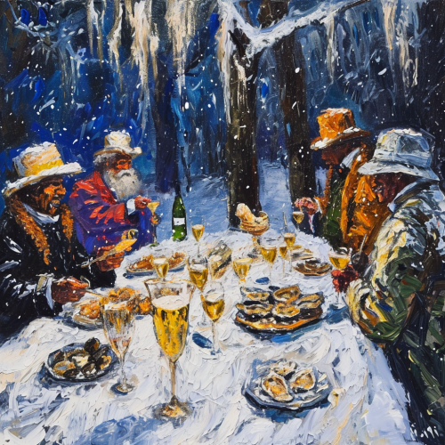 mardis gras party with champagne and oysters cajun creole in the snow --v 6.0