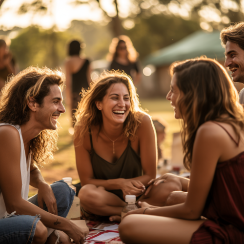 crea una representación visual de mujeres hermosas y felices en frente de hombres guapos que participan en un evento de speed dating en el campo, aquà tienes una descripción detallada que puedes utilizar: La Escena: Imagina una hermosa tarde soleada en un amplio campo verde rodeado de árboles frondosos. El cielo azul claro se extiende sobre el horizonte. En el centro de este idÃlico escenario, se encuentra un área claramente todos sentados en circulo Las Mujeres: Las mujeres, en el lado izquierdo de la imagen, son deslumbrantes. Visten con colores brillantes y primaverales, ropa comoda, que ondean con la brisa suave. Sus cabellos ondean en el viento, y tienen sonrisas radiantes en sus rostros. Algunas están riendo y charlando entre ellas mientras esperan a los hombres. Sus gestos y expresiones reflejan la anticipación y la alegrÃa de la ocasión. Algunas sostienen bebidas refrescantes. Los Hombres: Los hombres, en el lado derecho de la imagen, son igualmente atractivos. Visten de manera elegante y casual, con ropa comoda. Sus posturas son seguras y relajadas, y se ven conversando entre ellos mientras esperan conocer a las mujeres. Algunos sostienen copas de vino o cerveza, demostrando una actitud relajada y amigable. El Ambiente: El campo alrededor está lleno de vida. Puedes incluir algunos detalles, como mariposas revoloteando, pájaros en el cielo, y una suave brisa que agita las hojas de los árboles. La luz dorada del atardecer ilumina la escena, creando un ambiente cálido y acogedor. Atmósfera General: La imagen debe transmitir una sensación de alegrÃa, emoción y anticipación, capturando el espÃritu de un encuentro romántico en medio de la naturaleza. La interacción entre hombres y mujeres debe ser amigable y promisoria, creando un ambiente de posibilidades y [...]