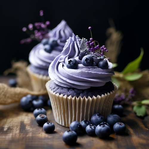 blueberry and ear grey cupcakes, realistic photograph for a recipe book, image as a blogger or instagramer would do at home