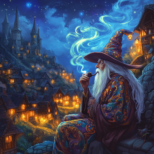 Clean paper-cut-out design in a fantasy style. gold foil accents, minimal color palette of deep-rich colors, and metallic gold, intricate linework, symmetrical and balanced composition, inspired by a magical scene of 4th of July fireworks display over Hogsmeade village, with vibrant enchanted fireworks lighting up the night sky in reds, whites, and blues, casting colorful reflections on cobblestone streets and quaint wizarding shops, Hogwarts castle faintly visible in the background under the starlit sky, wizards and witches gathered in awe, some waving small sparklers, warm glow from shop windows, festive and whimsical atmosphere, fantasy art style, rich colors