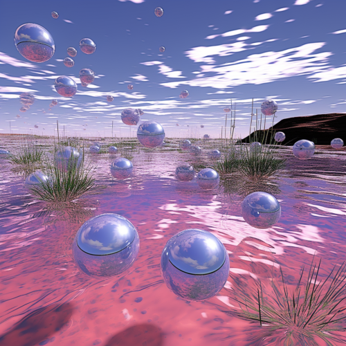1990s 3d computer animation, surreal, uncanny valley, minimalist, album pixelated glitchart of close-up of floating glass orbs in a landscape, ps1 playstation psx gamecube game screencapture, bryce 3d in a spacey like atmosphere --v 5.2