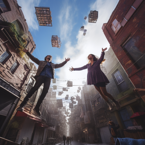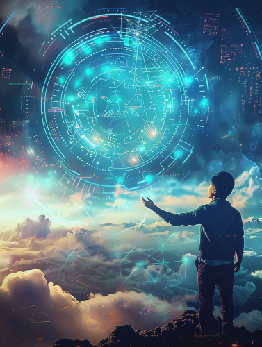 a man controling the ui surface in the sky, fantasy, --ar 3:4