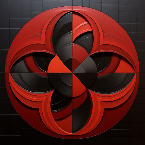 abstract geometric artwork in black and multiple shades of red, based on the shape of the infinity symbol