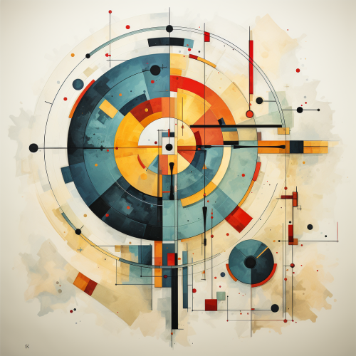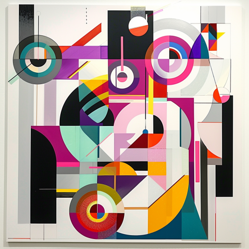 Create a geometric abstraction wall art piece for our office design room. The artwork should tell a story through its dimensions, narrative, and geometric elements. Use clean lines, shapes, and vibrant colors to convey a sense of balance and order. Consider incorporating layers and patterns to add depth and complexity to the piece. The dimensions of the artwork should complement the wall space, enhancing the overall aesthetic of the office. The geometric elements should symbolize different aspects of our company's values, history, or mission, creating a visually compelling narrative. The goal is to craft a distinctive and meaningful piece that not only complements the office design but also sparks curiosity and contemplation among viewers. --v 6.0