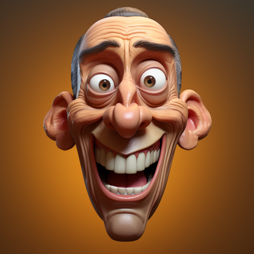 Comic caricature illustration، Bryan Howard, Exaggerated features with oversized head and eyes، Hyper-realistic vinyl toy appearance، Caricature art; oversized features, hyper-realistic portrayal