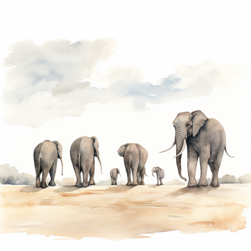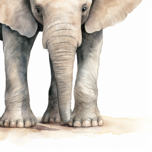 elephant close up, exaggerated stompint feet, minimalist watercolour children's book illustration --no details