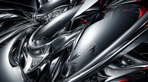 Create a high-definition abstract background inspired by the world of luxury automotive design, featuring metallic textures, engine parts, and sleek, futuristic shapes. Incorporate elements like chrome, brushed metal, and mechanical details, blending them artistically to create a dynamic, high-tech look. The colors should include polished silver, deep blacks, and touches of vibrant reds or blues to evoke the feeling of speed and precision. The composition should be intricate yet balanced, highlighting the fusion of art and engineering in the automotive world. --v 6.0 --ar 16:9
